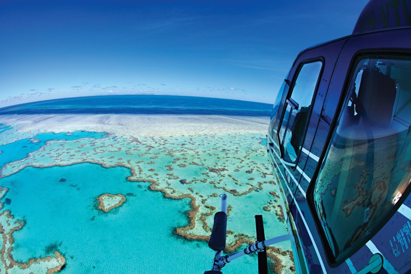Helicopter flight over Heart Reef, Great Barrier Reef, Australia