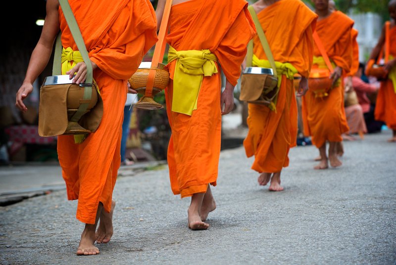 Monks collecting alms in Luang Prabang, Laos